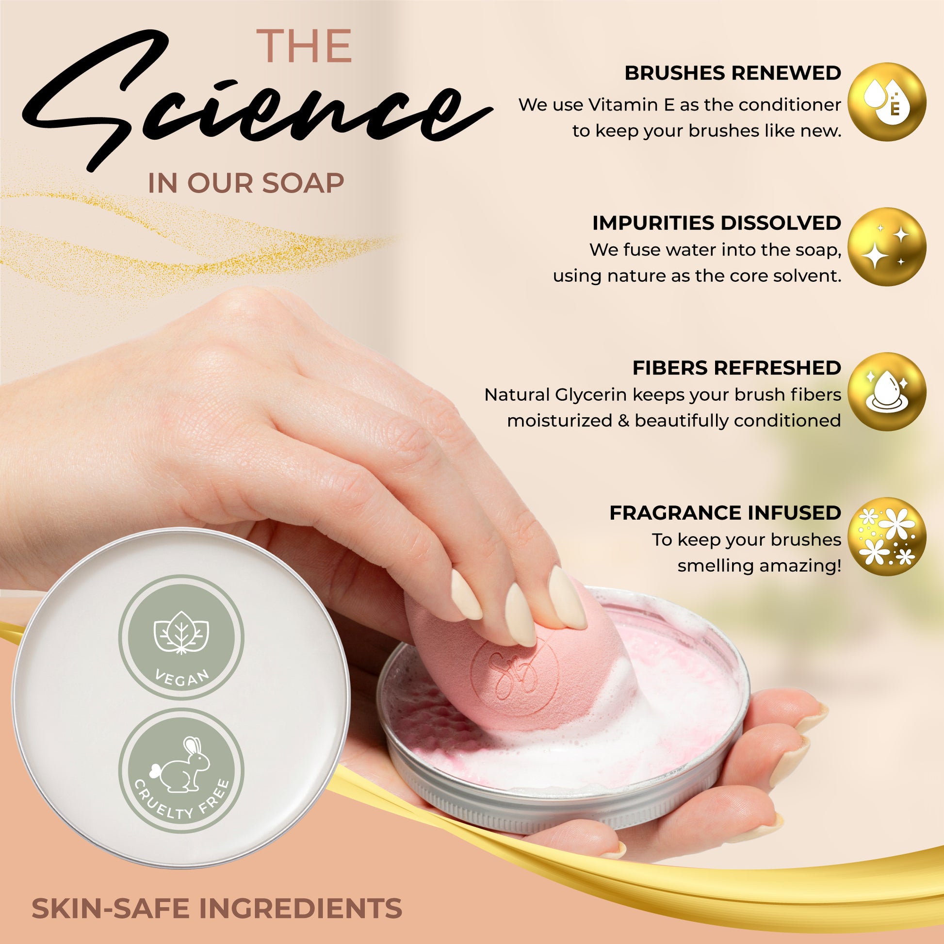 GENTLE ON SKIN, TOUGH ON MAKEUP: Our vegan and cruelty-free brush and sponge cleanser is formulated with natural skin-safe ingredients that effectively remove makeup residue - leaving your skin protected and your sponges & brushes soft and free from residue, microbes, and oils. Perfect for sensitive skin!