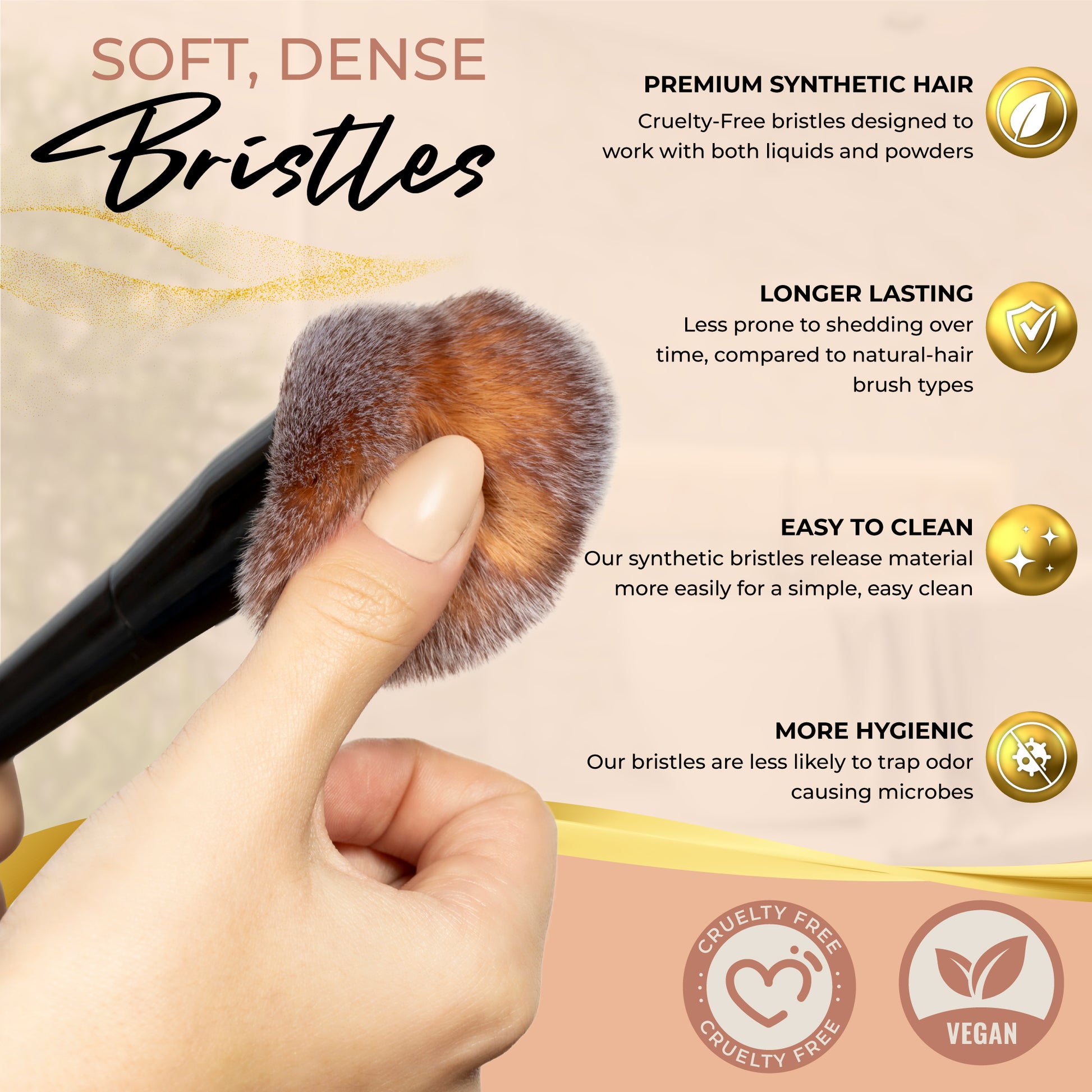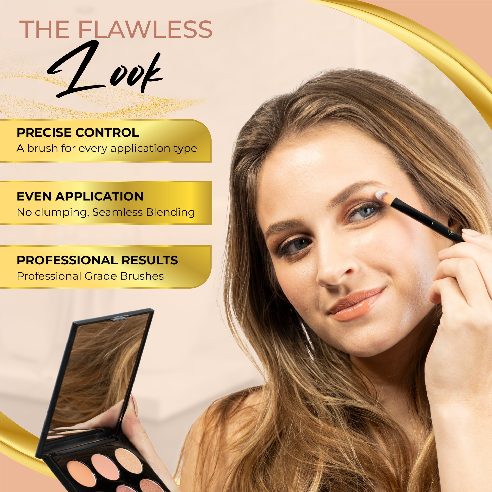 PROFESSIONAL PRECISION: Designed with professionals in mind, our quality makeup brushes feature balanced wooden handles and soft synthetic bristles for precise eyeliner, shadow and contouring applications. Smoothly blend liquids, creams and powders without streaks or fallout.