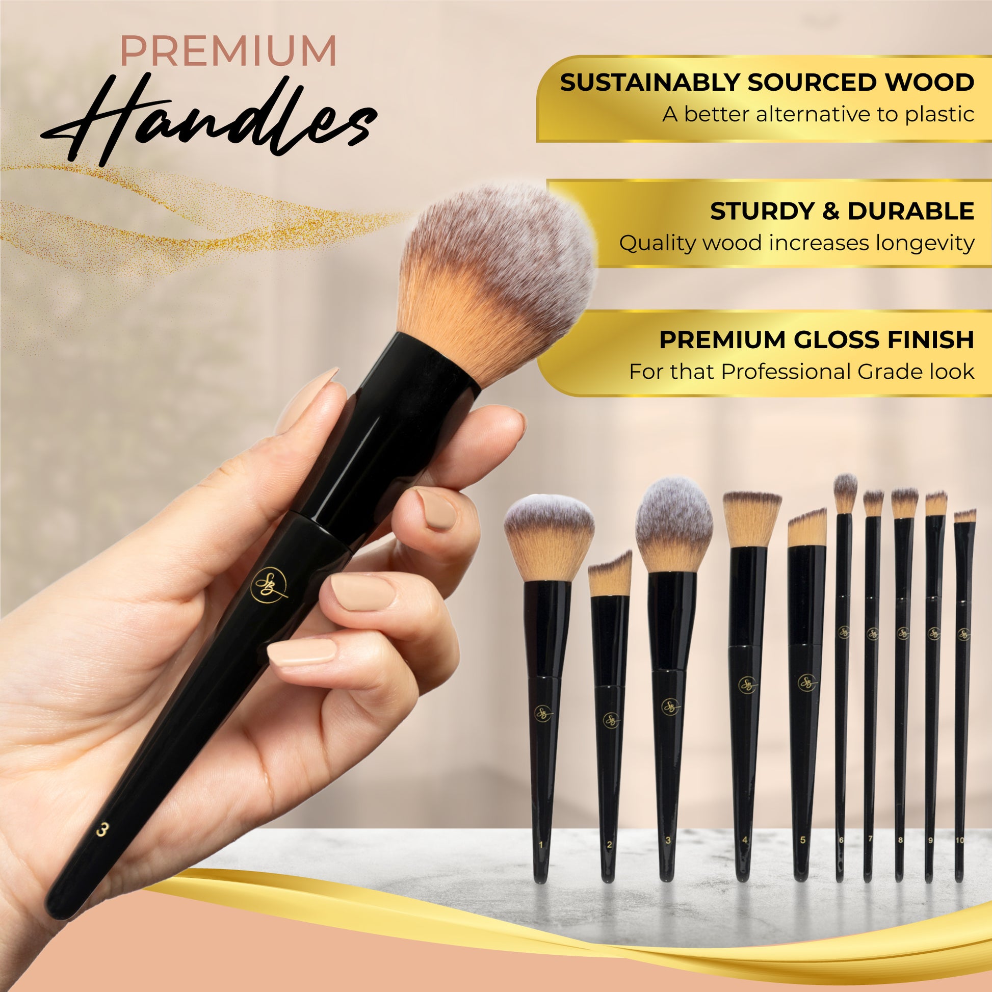 ROBUST CONSTRUCTION, REFINED FINISH: Designed for durability, these makeup brushes are made from the highest quality materials. The soft synthetic bristles ensure a gentle touch, while the durable wooden handles offer a comfortable grip for better control and precision.