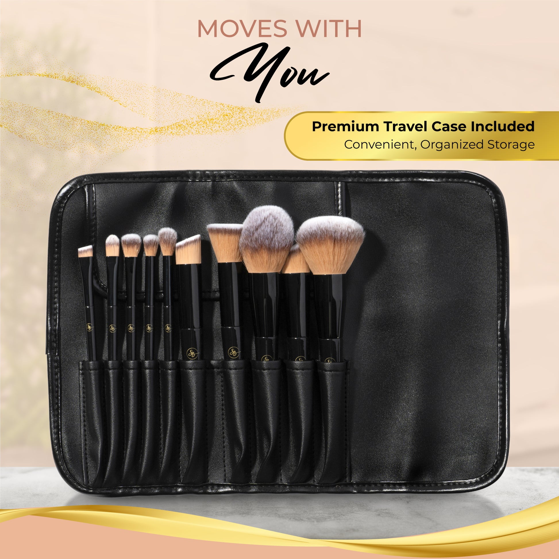 TRAVEL WITH EASE: Carry your makeup brushes with ease using the included 10-slot case. Perfect for travel, this custom case ensures you always have your essential tools - always protected, easily accessible.